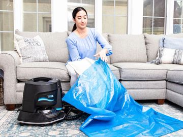 This handy plastic bag removes stale, dusty air from cushions and pillows and is sized to fit